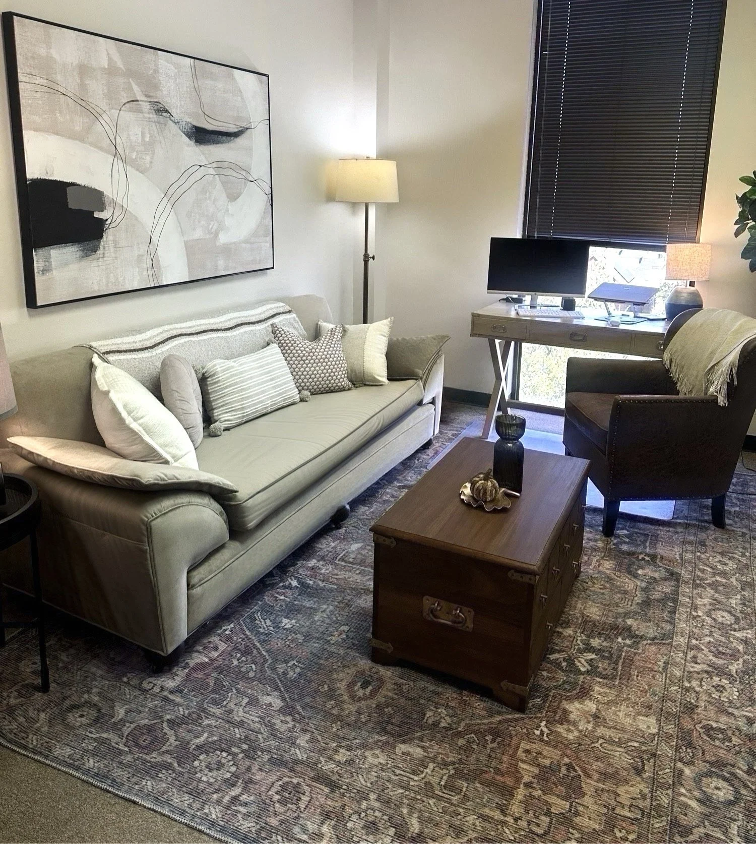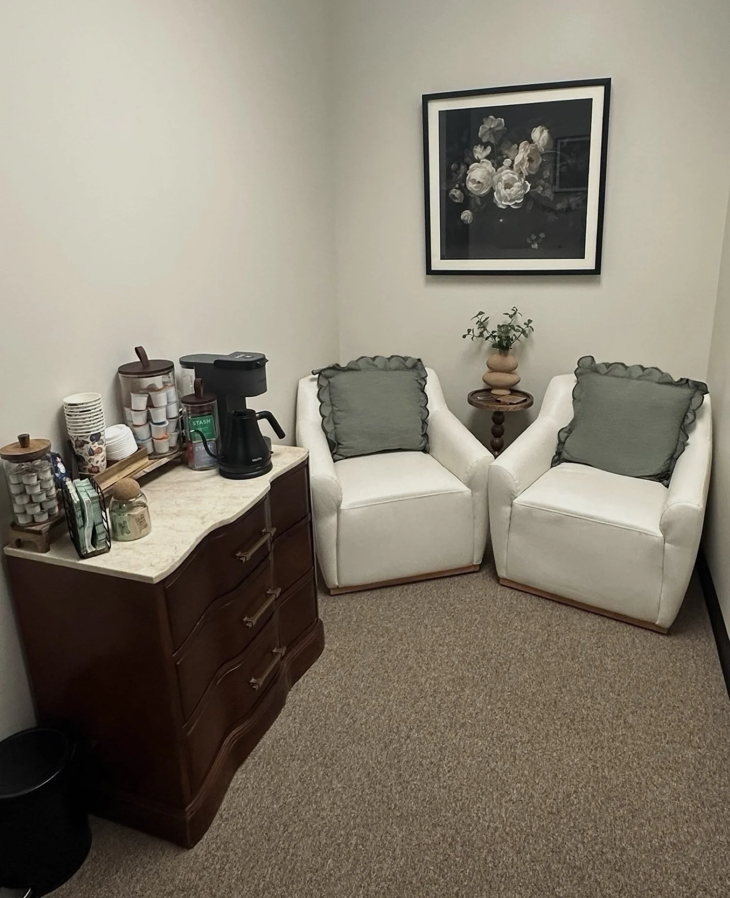 Our office is located on the 5th Floor in Suite 508. Upon exiting the elevator on the 5th floor, turn right and proceed down the hallway. Look for the second brown door on your left labeled "Rhythm Wellness, PLLC." Feel free to help yourself to refreshments and make yourself comfortable in our waiting room!